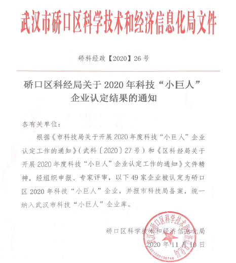 近日,武漢市硚口區(qū)科學(xué)技術(shù)和經(jīng)濟(jì)信息化局公示了《2020年硚口區(qū)科技“小巨人”企業(yè)認(rèn)定名單》。作為智慧化綜合管理解決方案提供商,斯艾特科技經(jīng)過組織申報(bào)與專家評(píng)審?fù)ㄟ^,被認(rèn)定為硚口區(qū)2020年科技“小巨人“企業(yè)。這是斯艾特科技繼獲得“高新技術(shù)企業(yè)”、“中國安防百強(qiáng)工程商”等榮譽(yù)后又一具有技術(shù)含量的殊榮。