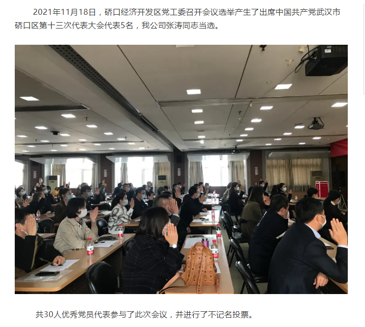 張濤同志當選黨代表將參加 中國共產黨武漢市硚口區第十三次代表大會